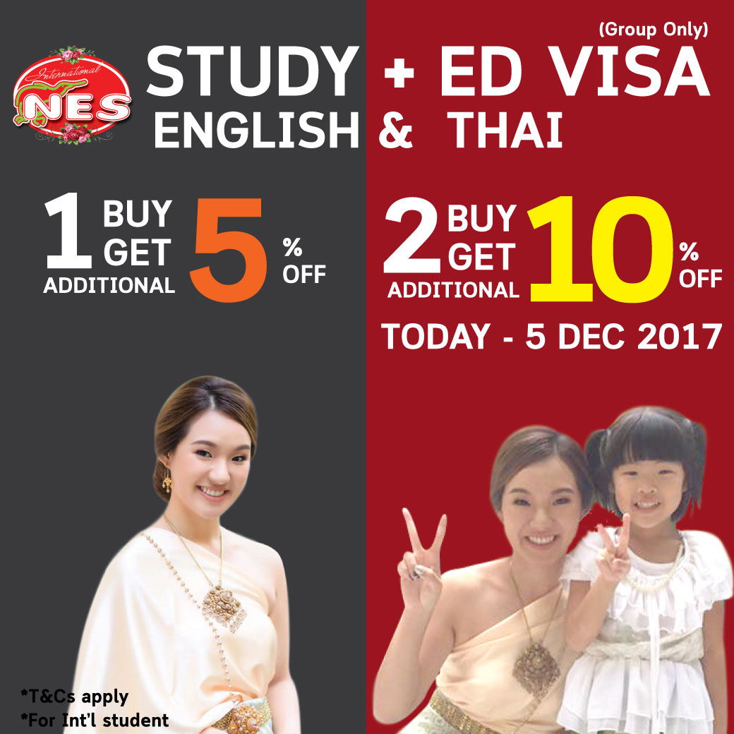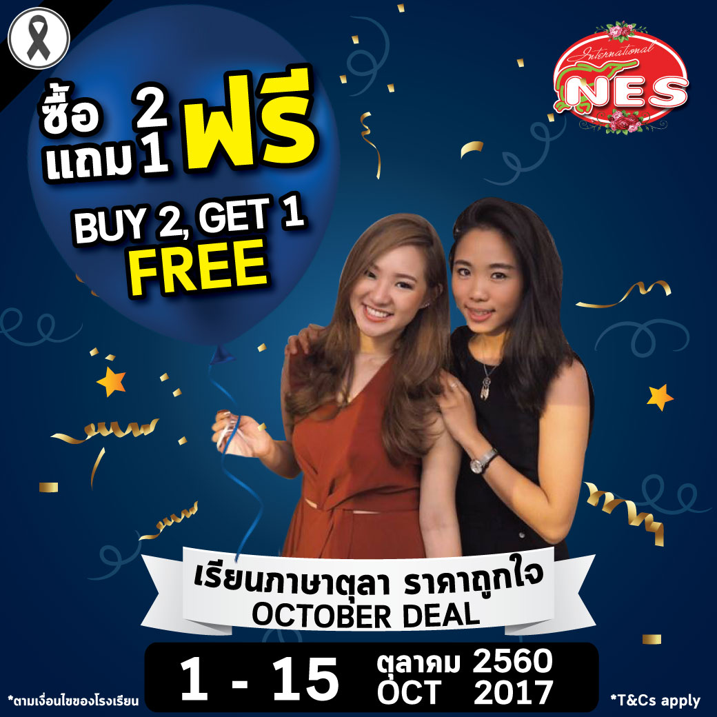 Hello everyone NES School of Languages would like to introduce our new HOT promotion of this October 2017 Buy 2 Get 1 FREE‼️ This promotion is available for every languages program Ex. Grammar program, Conversation program etc.